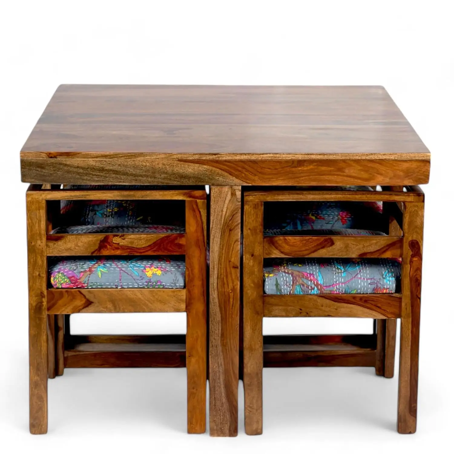 - Dimensions (WxDxH): Dining Table – 40x40x30 Inch / 101.6×101.6×76.2 Cms; Weight – 21 Kgs | Chair – 18x18x26 Inch / 45.7×45.7×66 Cms; Seating Height – 17 Inch/ 43.2 Cms; Weight – 10.99 Kgs