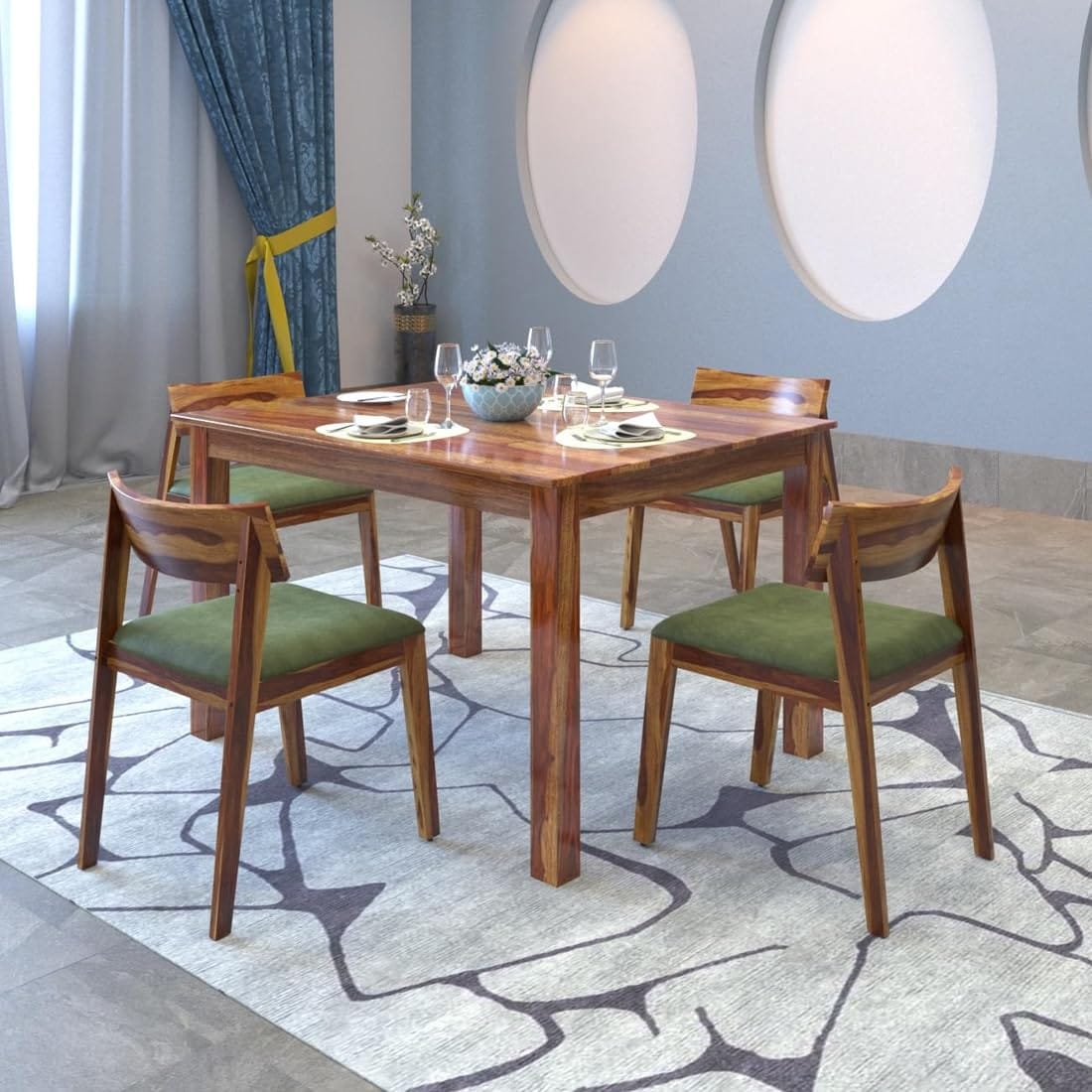 Comfort & Style: Includes four cushioned chairs, ensuring comfortable seating for family meals and gatherings.